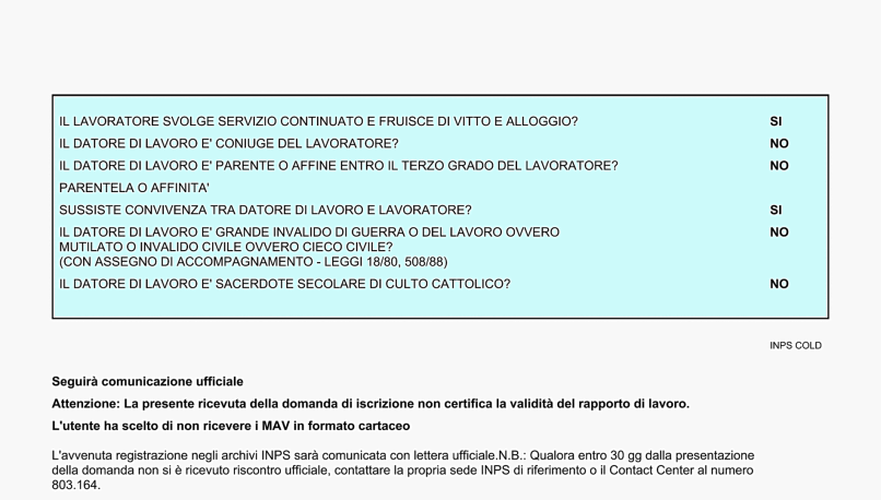 Si ricorda, che il contratto di lavoro, registrato all’Inps, è stato prima registrato con la risposta ai quesiti di: